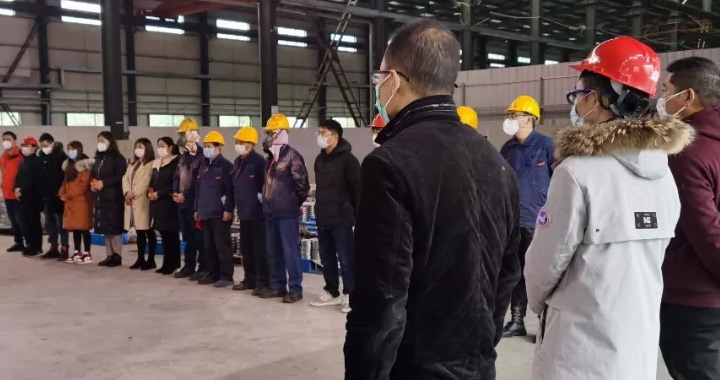 復工第一天,工廠(chǎng)全體員工參與動(dòng)員大會(huì ),明確安全措施,強化工作規范,強調疫情預防注意事項。